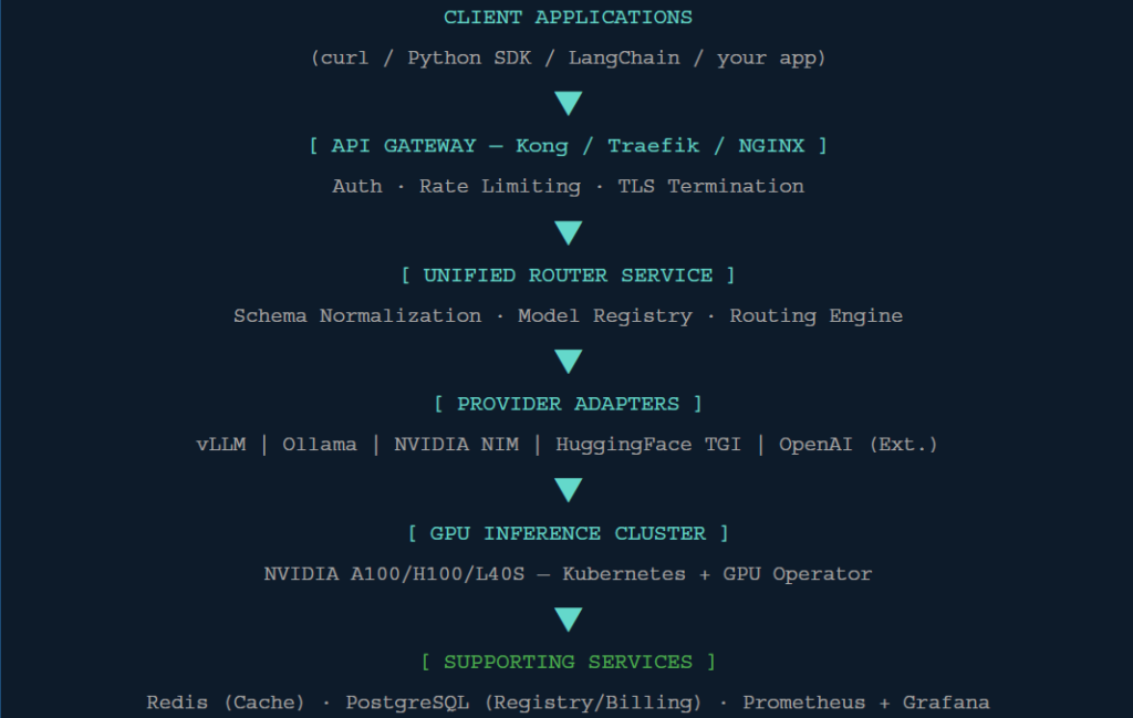 behind a single, familiar API. The same principle applies at enterprise scale on private hardware — and