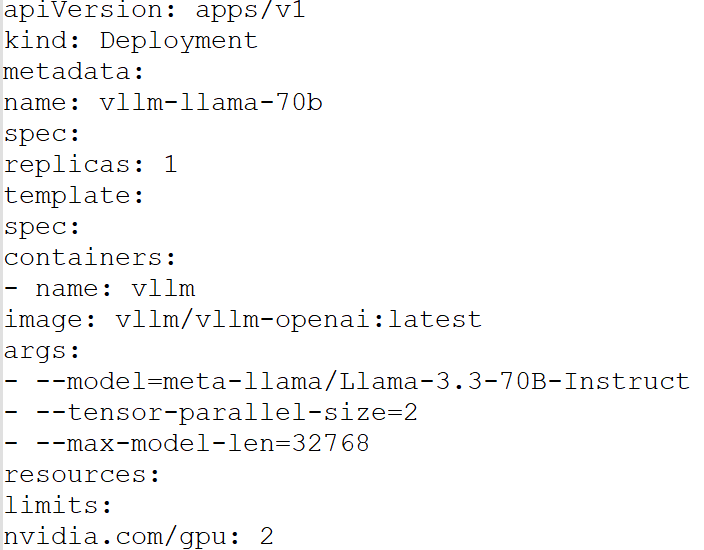 vLLM deployment example (Kubernetes manifest):