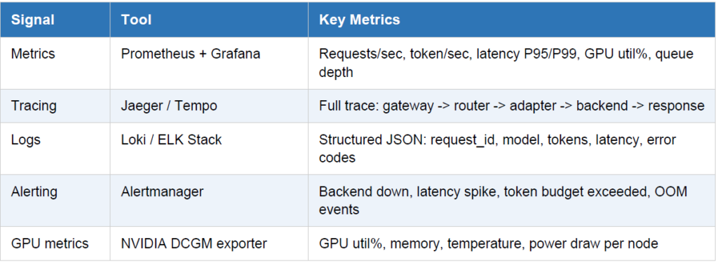 Without observability, you’re flying blind. The private router must emit metrics, traces, and logs that your